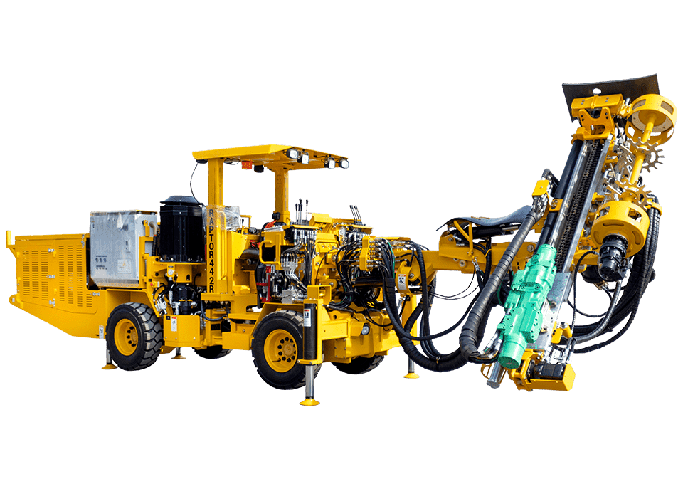 Su sistema BARICENTRO para sincroniza automáticamente los ejes de perforación y rotación facilita la perforación de tiros radiales y paralelos con menores tiempos de posicionamiento. Gran estabilidad con una longitud máxima de perforación hasta 35 m, diámetros hasta 102 mm, rimado 127 mm.